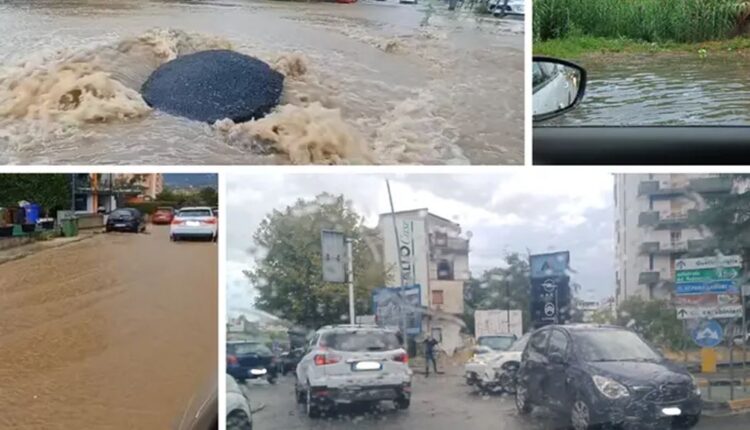 In meno di un’ora la pioggia ha saturato i canali di scolo: incidenti, tombini saltati e circolazione bloccata