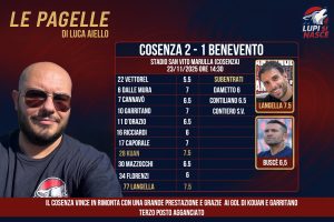 Dal dischetto si presenta Garritano che non sbaglia calciando forte di destra alle spalle di Vannucchi. Risultati ribaltato. Al 67′ D’Orazio spreca la più facile delle occasioni mettendo clamorosamente fuori da due passi su perfetta assistenza dalla destra. Dopo i cambi Buscè risistema i suoi con un più prudente 3-5-1-1. Non soffre particolarmente il Cosenza e l’unico brivido lo mette al 90′ con un tiro dal limite di Tumminiello che finisce alto sulla traversa. Al 94′ splendida giocata di Contiero che serve Ricciardi che però calcia alto. In pienissimo recupero Floro Flores si gioca la sua prima card per una richiesta di calcio di rigore. Ma l’intervento di Langella è sul pallone e non c’è nulla da rettificare. Il Cosenza vince e aggancia proprio le streghe al terzo posto in classifica.
