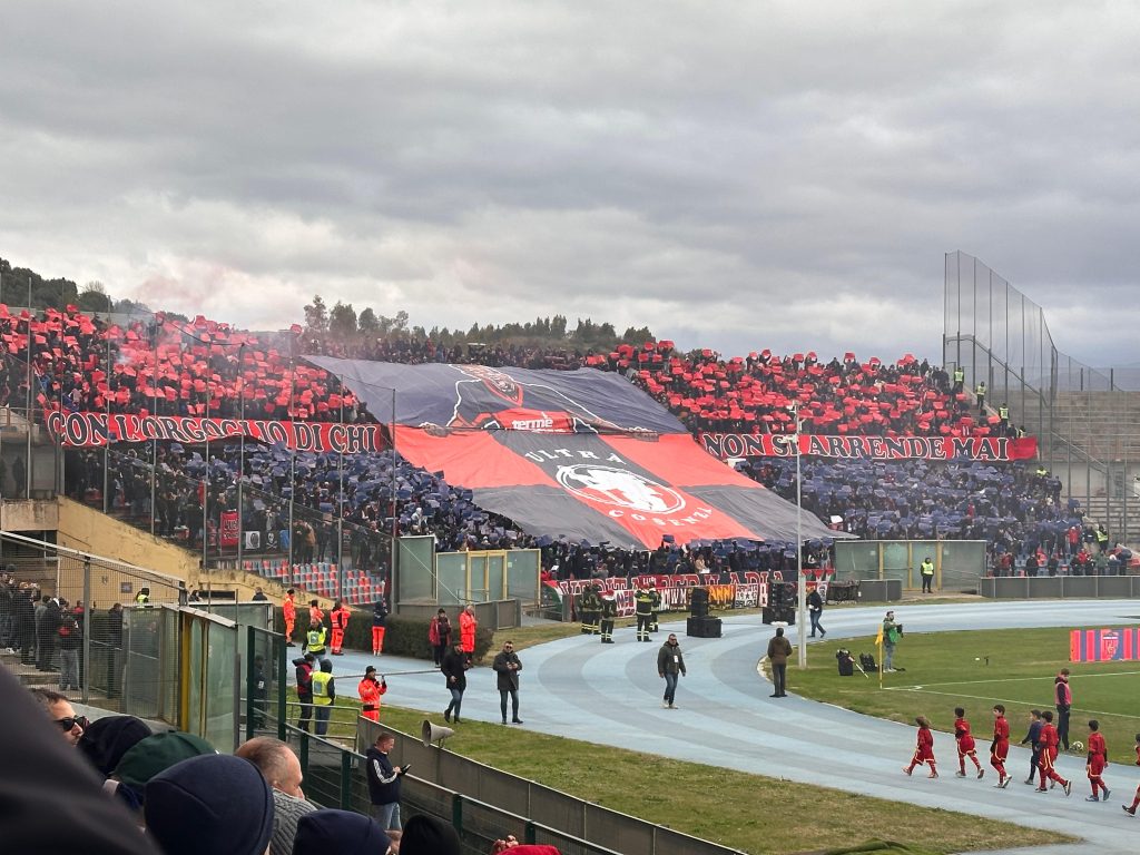 Tensione alle stelle al Marulla, ma il calore verso la squadra è di quelli pesanti, e anche le curve (entrambe) rispondono presente con annesse coreografie (“con l’orgoglio di chi non si arrende mai” e “il Cosenza da sempre è di chi lotta e ci crede“) e contestazione a unica voce verso patron Guarascio. Un segnale chiaro, in attesa di una risposta concreta (se risposta sarà) da qui a qualche giorno. Standing ovation, invece per Alvini.